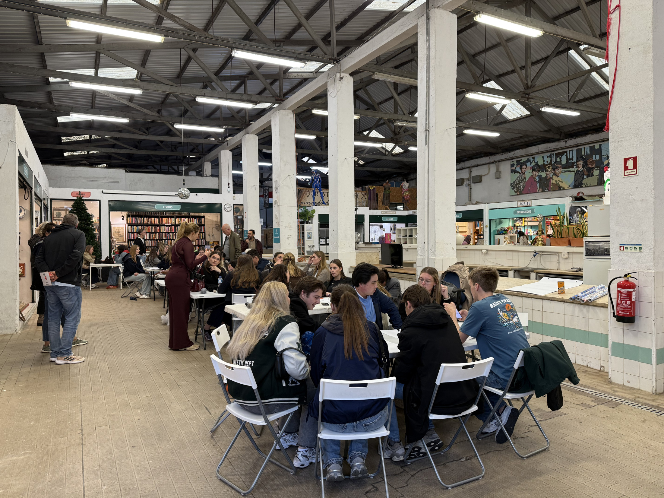 In the afternoon, the students took part in a workshop at Dona Ajuda, a non-profit social project that embodies solidarity and resilience in Lisbon. Based in the Mercado do Rato, Dona Ajuda collects donated goods and gives them new purpose—selling them at accessible prices to support more than 1,600 families every year. The space functions not only as a second-hand shop, but as a lively community center where cultural activities, creative workshops, and local events help strengthen neighborhood connections.